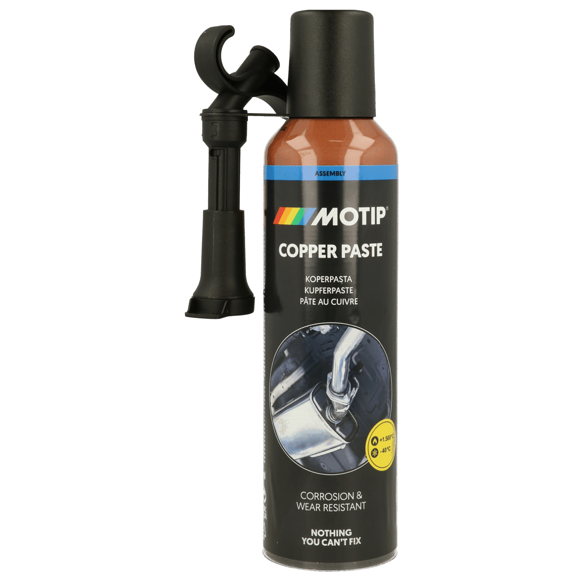 MOTIP Copper Paste ir augstas kvalitātes montāžas pasta uz vara daļiņu bāzes, paredzēta detaļu eļļošanai, kas pakļautas augstām temperatūrām un korozīvai iedarbībai, piemēram, vītņotiem savienojumiem, rullīšu un slīdgultņiem, bremžu detaļām un pneimatiskajiem instrumentiem. MOTIP Copper Paste samazina kustīgo detaļu berzi un nodrošina efektīvu aizsardzību pret koroziju.
