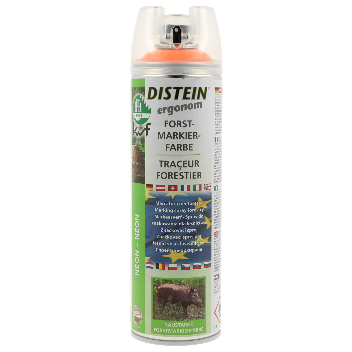Distein Forestry Marking Spray ir paredzēts koku, koksnes un arī akmens marķēšanai. Distein Forestry Marking Spray izceļas ar drošu saķeri arī uz mitrām virsmām, ir noturīgs pret laikapstākļiem un ūdensizturīgs.