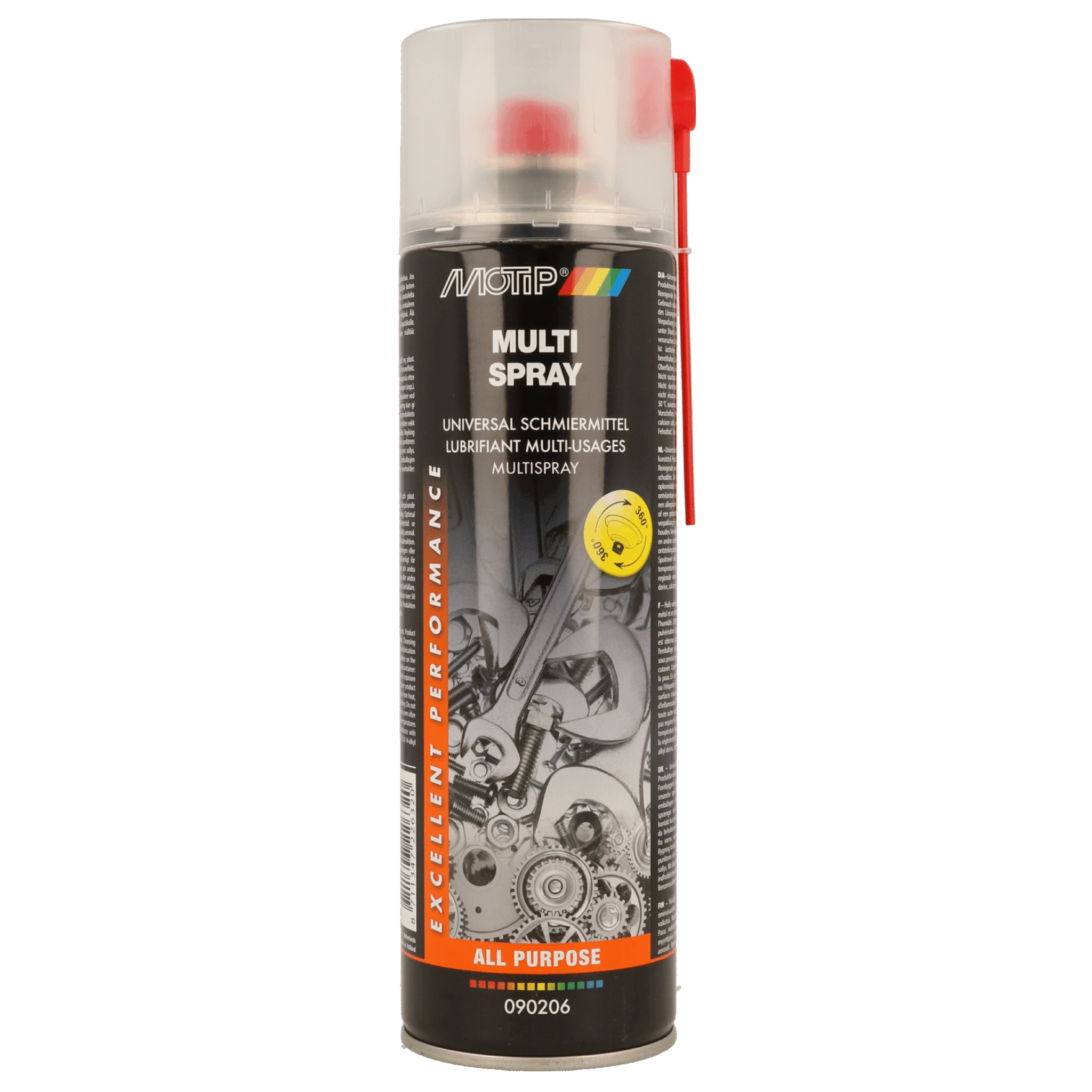 Novērsiet čīkstēšanu un grabēšanu un ļaujiet iestrēgušām detaļām atkal darboties vienmērīgi, ieeļļojot tās ar MOTIP Multi Spray. Multi Spray ir ar tīrošu efektu – tas noņem eļļu, taukus, vasku un darvu. Tas ir universāls eļļošanas līdzeklis, kas eļļo, aizsargā un attīra. MOTIP Multi Spray nodrošina izcilu iesūkšanos, atgrūž mitrumu, novērš rūsas veidošanos un atstāj aizsargplēvi.