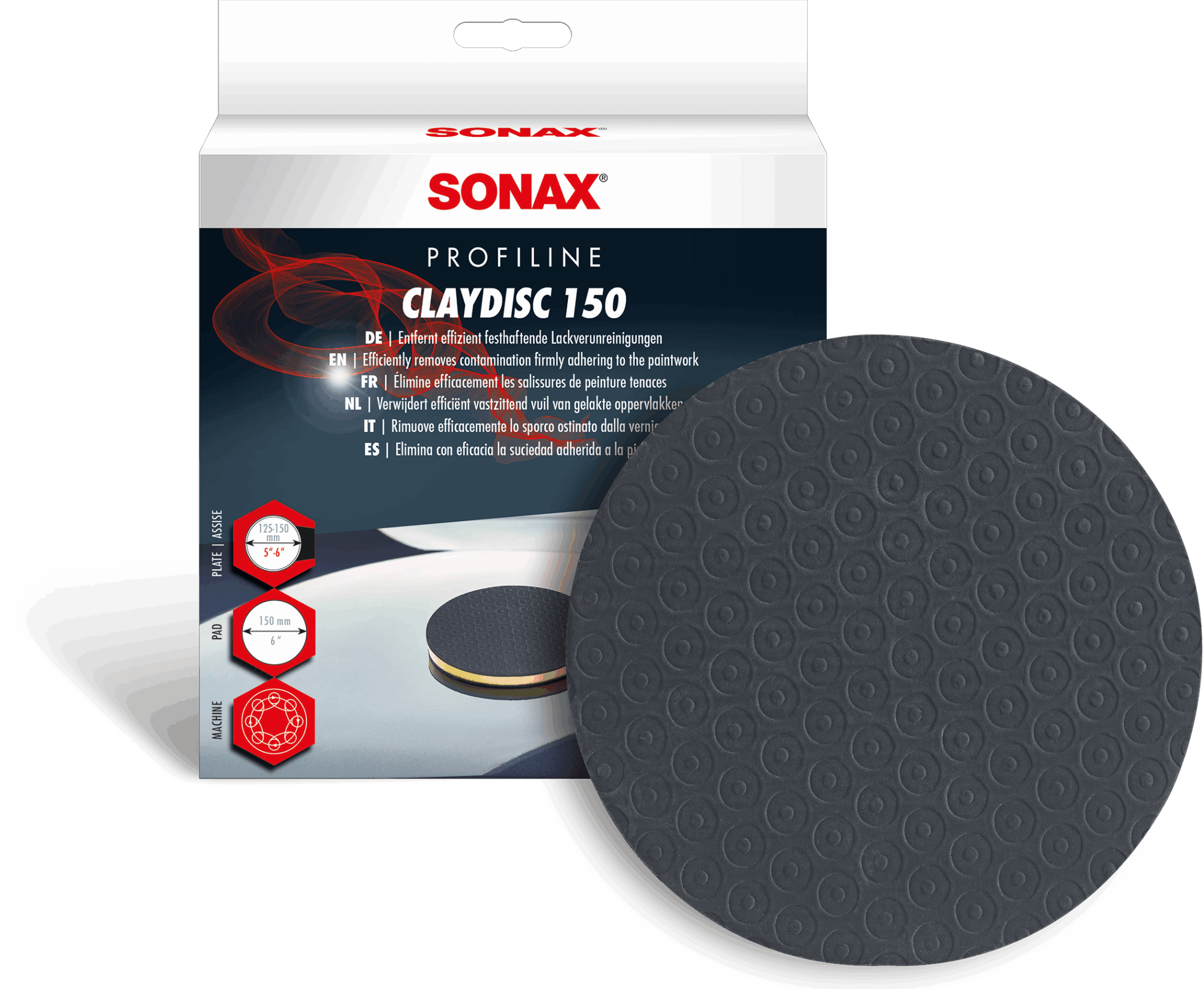 Sonax Māla disks, mašīnu apstrādei. Notīra un izlīdzina krāsotās virsmas. Ideāli piemērots noturīgu netīrumu, piemēram, ūdens traipu, koku sulas, līmes atlikumu un citu netīrumu noņemšanai. Diametrs 150mm. Var apstrādāt līdz 60 automašīnām. Viegli tīrāms, noskalojot ar ūdeni savāktos netīrumus.