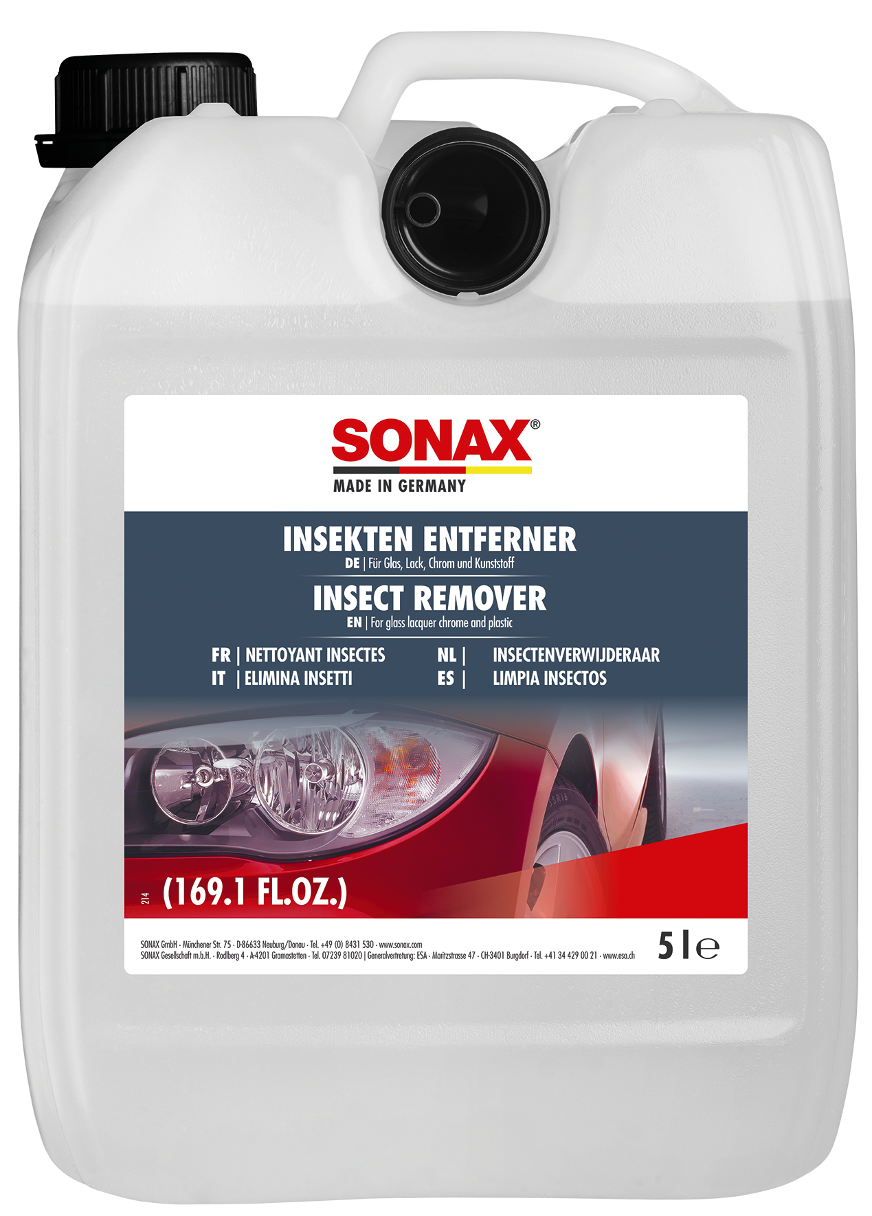 SONAX Insektu atlikumu noņemšanas līdzeklis. Tīrītājs ātri un bez piepūles noņem kukaiņus no stikla, krāsas, hroma un plastmasas, neitralizē skābes no kukaiņiem. Pateicoties izcilajām infiltrācijas spējām, speciālais tīrītājs mīkstina pat izkaltušus kukaiņu pārpalikumus, nekaitējot virsmām. Bez šķīdinātāja.