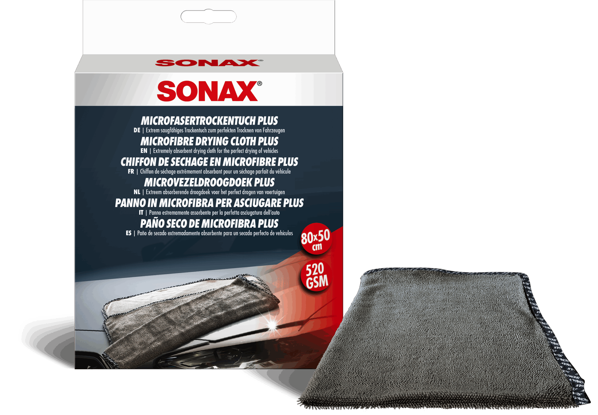 SONAX Mikrošķiedras žāvēšanas dvielis Plus. Ideāls instruments laika taupīšanai, vieglai un krāsojumam draudzīgai transportlīdzekļu žāvēšanai, pateicoties savītām cilpas mikrošķiedrām, kurām ir ilgs kalpošanas laiks. Augstas kvalitātes mikrošķiedras audums, kā rezultātā tiek nodrošināta ideāla žāvēšana bez mikropērlītēm. Ar noapaļotiem stūriem un sašūtām malām.