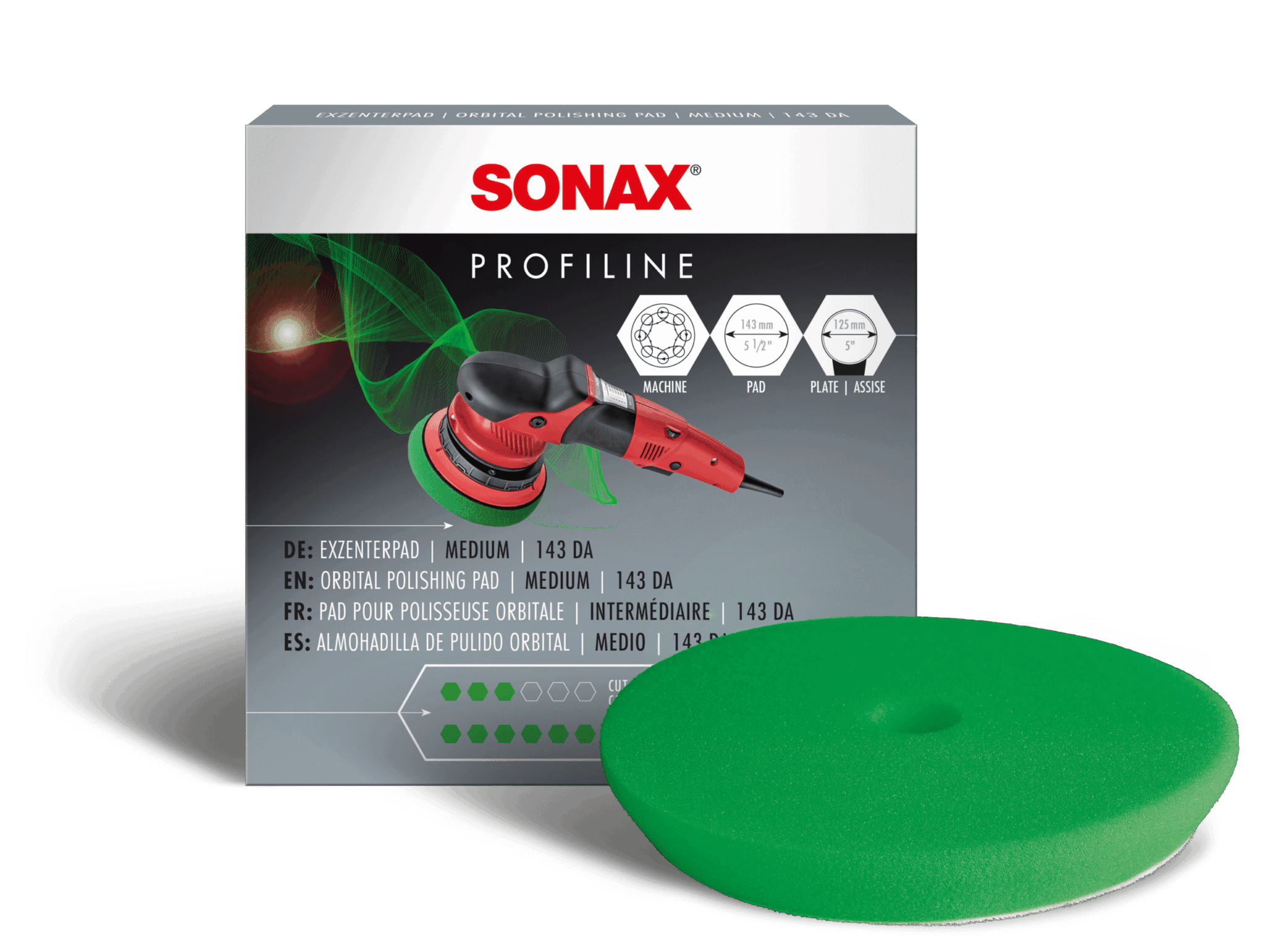SONAX Mīksta dzeltenā pulēšanas ripa. Atvērtu poru pulēšanas ripa ar ļoti vienmērīgām šūnām krāsojumu smalkai pulēšanai ar ekscentriskām pulēšanas mašīnām, lietojot ar Sonax Profiline līdzekļiem. Paildzina kalpošanas laiku rumbai labas ventilācijas un īpašas dzesēšanas dēļ. Sūkļa augstā absorbācijas spēja novērš pulēšanas pastas izšļakstīšanos. Velcro stiprinājums ļauj ātru maiņu. Diametrs 143mm.
