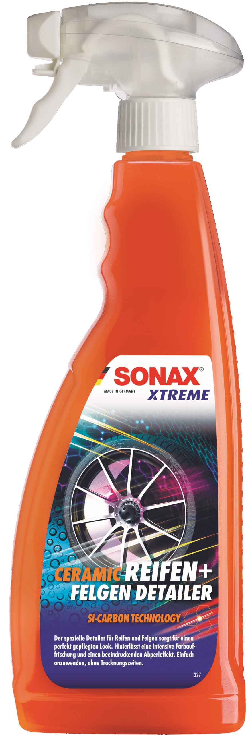 SONAX XTREME pārklājums diskiem un riepām, dodot pārklājumu ar keramikas īpašībām. Dziļi iesūcas apstrādātajā virsmā un atstāj beztraipu aizsargslāni un iespaidīgu pērlīšu efektu. Piemērots visu veidu riepām un diskiem. Riepas/gumija atgūst savu jauno, matēto izskatu. Aizsargā pret netīrumiem, priekšlaicīgu novecošanos, plaisāšanu, laikapstākļiem un vides ietekmi. Nodrošina izcilu gludumu un izcilu spīdumu. Turpmākā tīrīšana ir ievērojami vienkāršota.