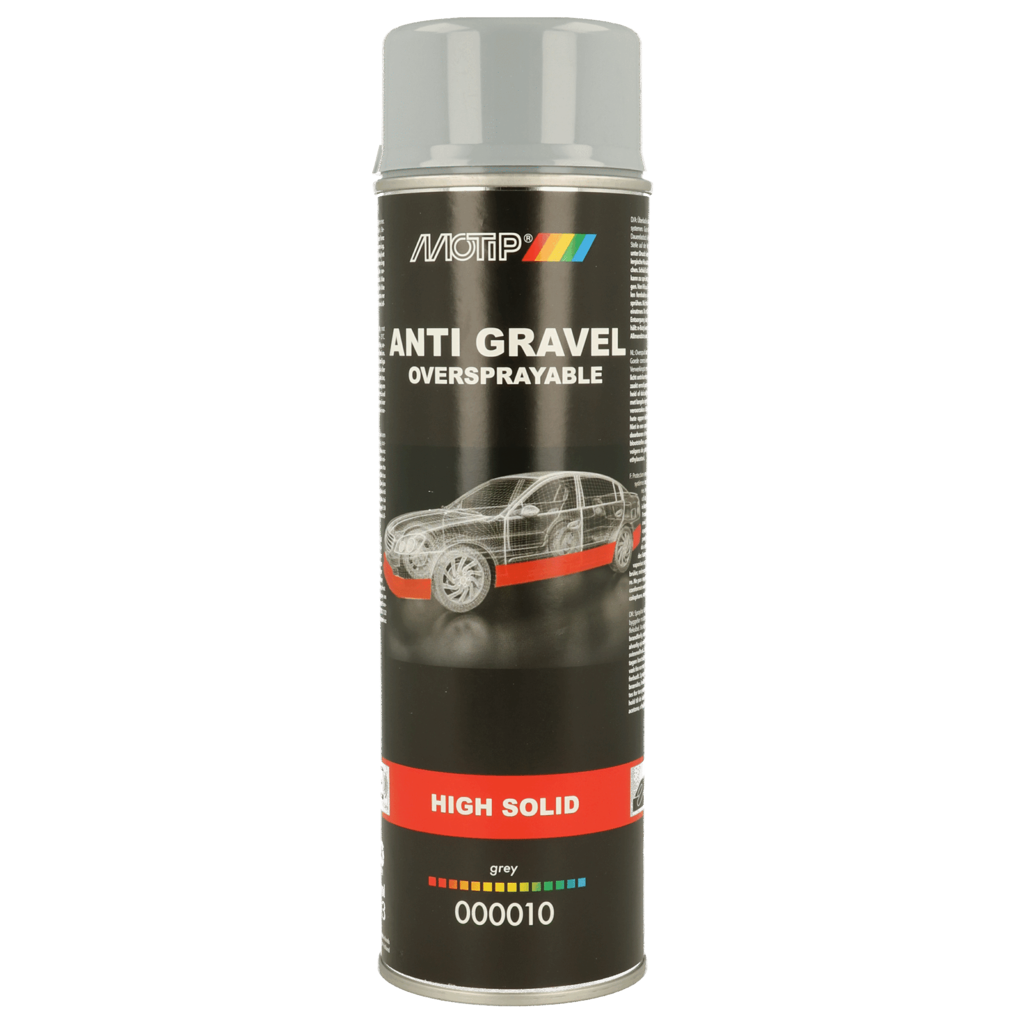 Aizsargājiet automašīnas apakšējo daļu un redzamās virsbūves daļas no bojājumiem ar MOTIP Pretakmeņu aizsardzības Aerosolu. Šo pārklājumu var krāsot, un tam ir lieliska pratrūsas aizsardzība. Pretakmeņu aizsardzības Aerosols ir izturīgs pret laika apstākļiem, vājām skābēm un sārmiem, ir skaņu absorbējošs un saglabā elastību.